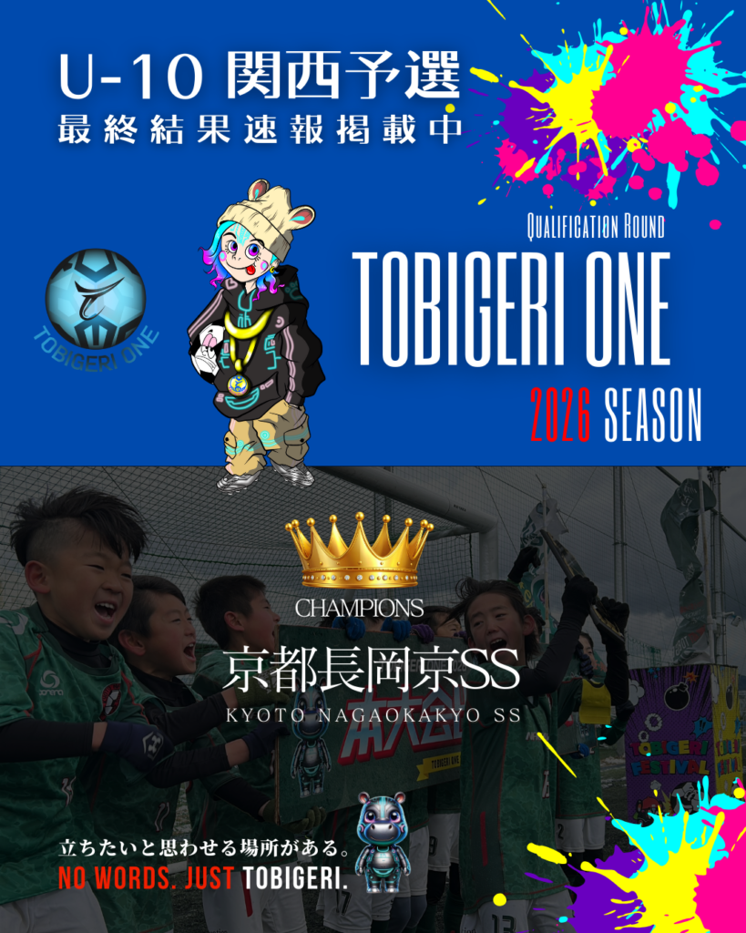 TOBIGERI ONE 2026 U-10関西予選 DAY1結果速報初日試合結果 各種SNSアカウント TOBIGERIオフィシャルショップはこちら \結果速報はX(旧…