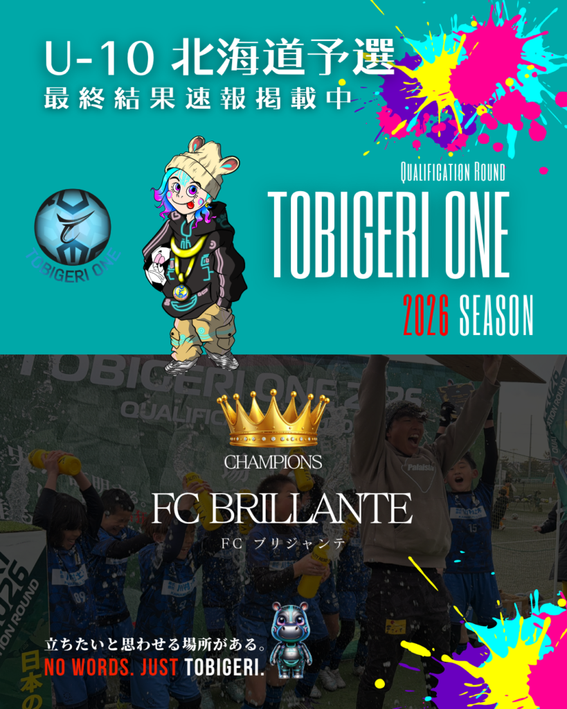 TOBIGERI ONE 2026 U-10北海道予選 最終結果速報❤️🔥最終結果 本大会出場権獲得 FC BRILLANTE(青森県) 参加チーム 各種SNSアカウント T…