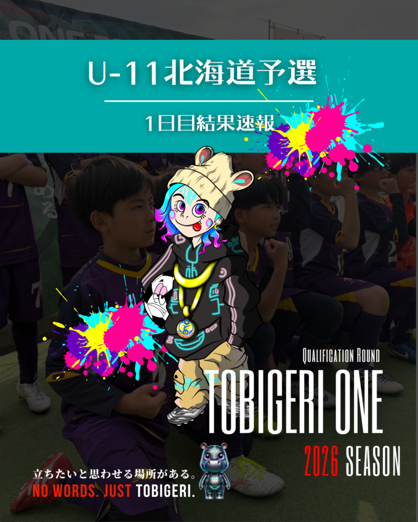 TOBIGERI ONE 2026 U-11北海道予選DAY1結果速報初日試合結果 各種SNSアカウント TOBIGERIオフィシャルショップはこちら \結果速報はX(旧…