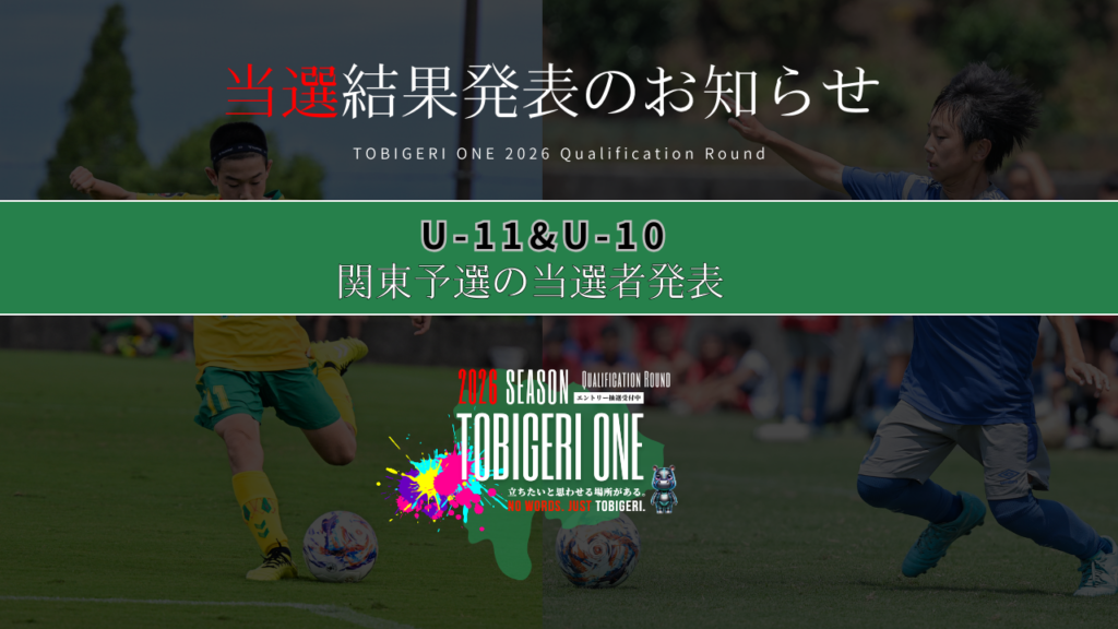 TOBIGERI ONE 2026 U-11&U-10関東予選当選結果発表🎯🔜U-11関東予選✨ 🎯当選発表はこちら🎯 🔜U-10関東予選✨ 🎯当選発表はこちら🎯 🔜当選チーム…