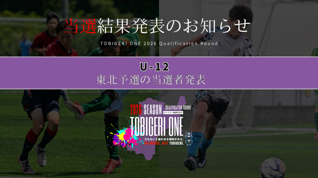TOBIGERI ONE 2026 U-12東北予選当選結果🎯🔜U-12東北予選✨ 🎯当選発表はこちら🎯 🔜当選チーム様には、事務局より個別にご連絡を差し上げてお…