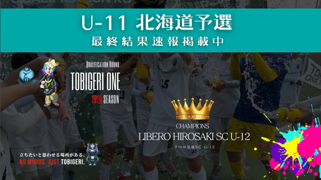 TOBIGERI ONE 2026 U-11北海道予選最終結果速報❤️🔥最終結果 本大会出場権獲得 リベロ弘前SC U-12(青森県) 参加チーム 各種SNSアカウント T…