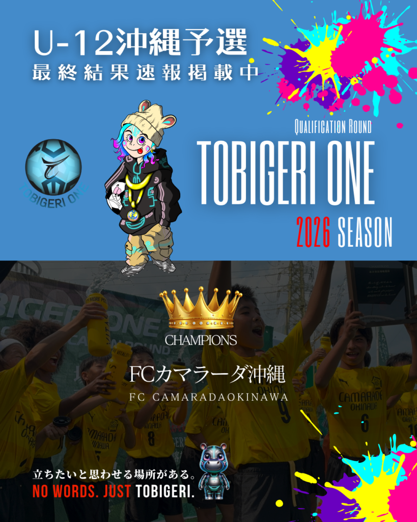 TOBIGERI ONE 2026 U-12沖縄予選最終結果速報❤️🔥最終結果 本大会出場権獲得 FCカマラーダ沖縄(沖縄県) 参加チーム 各種SNSアカウント TOBI…
