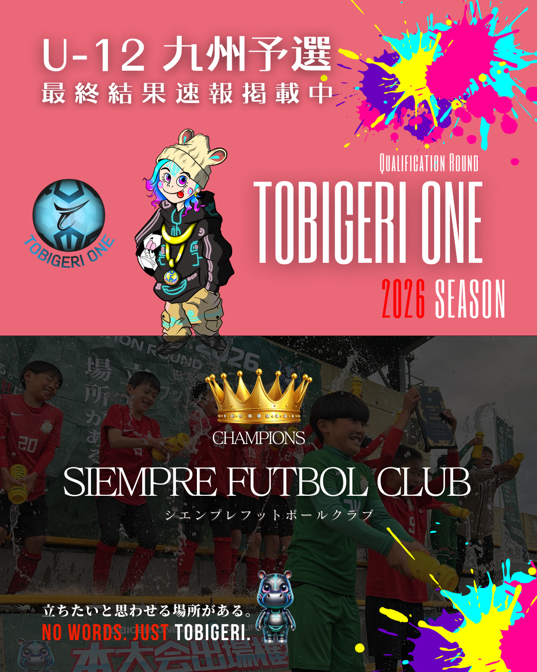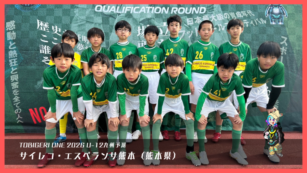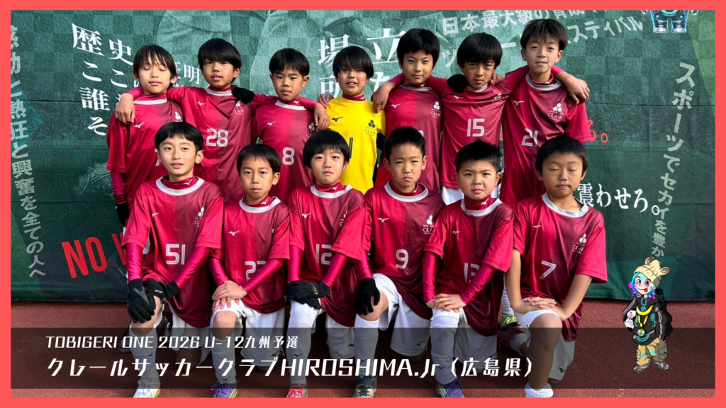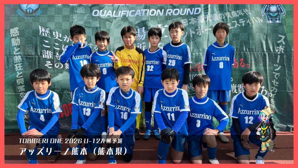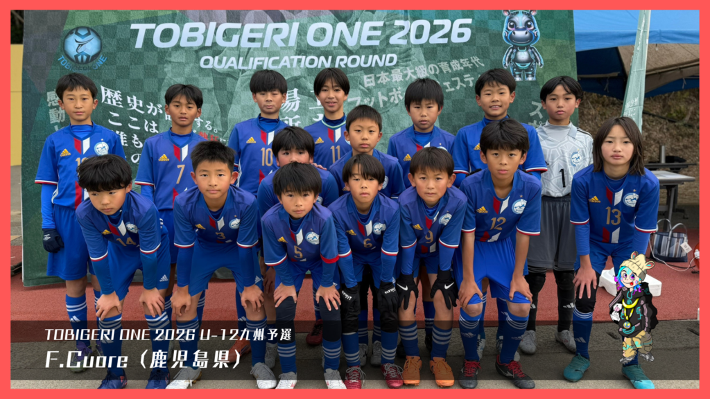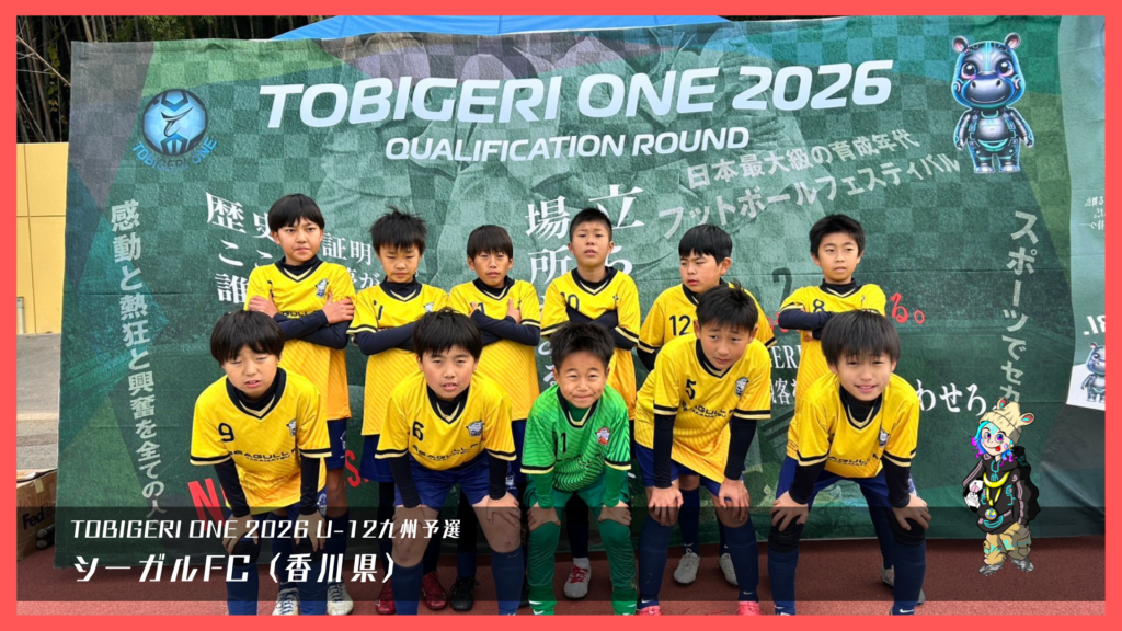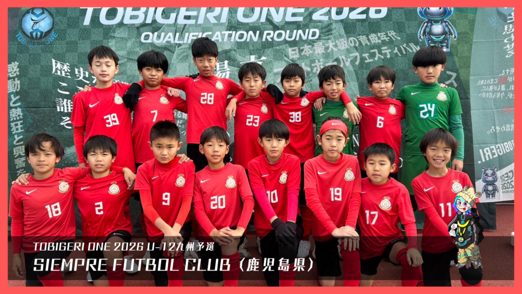 TOBIGERI ONE 2026 U-12九州予選🌏【最終結果速報】 2025年12月29日 お知らせ 最終結果 ダウンロードはこちら 本大会出場権獲得 SIEMPRE FUTBOL CLUB(鹿児島県) 参加チーム一覧 各種SNSアカウント TOBIGERIオフィシャルショップはこちら \結果速報はX(旧Twitter)/ \選手たちのリアルな様子はInstagram/ \大会終了後はYoutube/ \おもしろ動画はTiktok/ \テキスト速報&イベントの裏側はThreads/ URL Copied!
