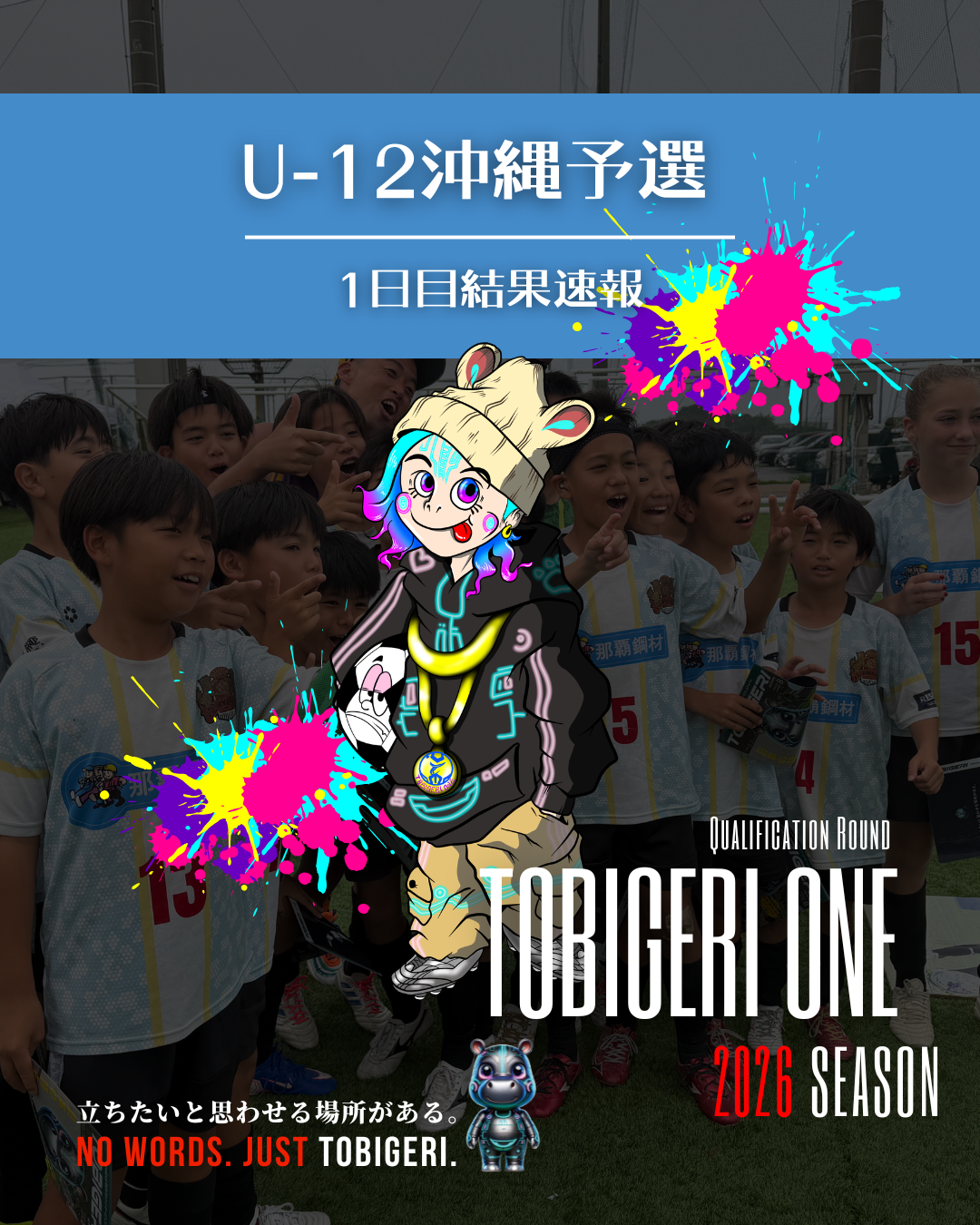 TOBIGERI ONE 2026 U-12沖縄予選 DAY1結果速報❤️🔥 2026年4月11日 お知らせ 初日試合結果 ダウンロードはこちら 各種SNSアカウント TOBIGERIオフィシャルショップはこちら \結果速報はX(旧Twitter)/ \選手たちのリアルな様子はInstagram/ \大会終了後はYoutube/ \おもしろ動画はTiktok/ \テキスト速報&イベントの裏側はThreads/ URL Copied!