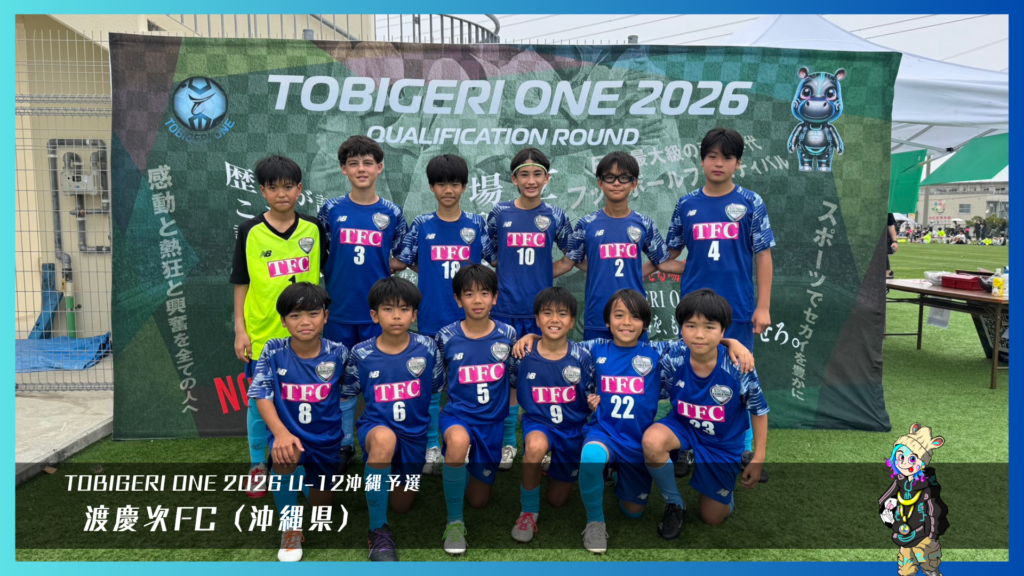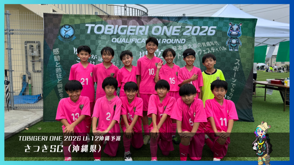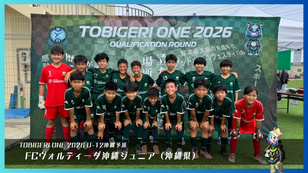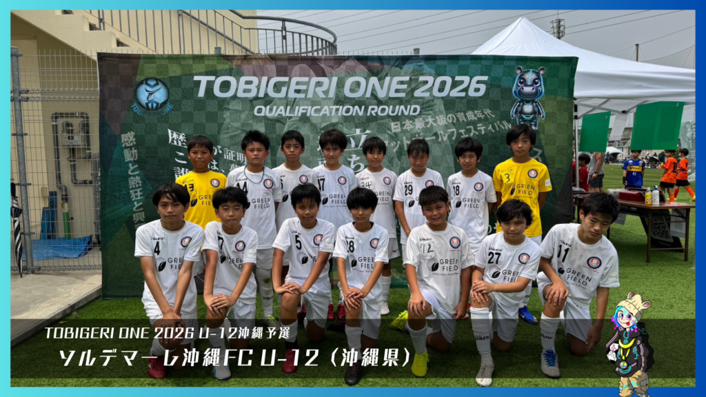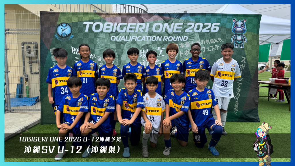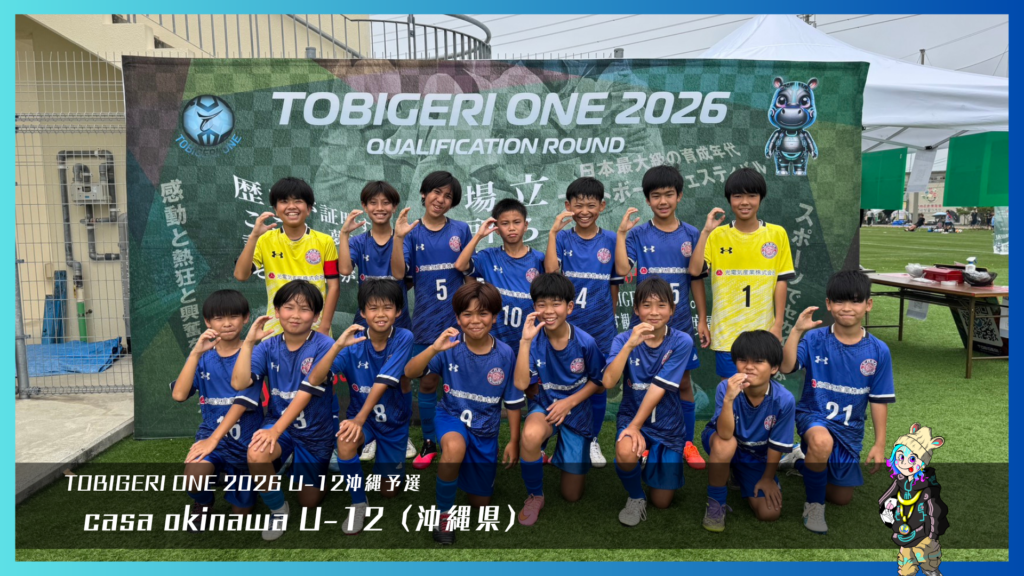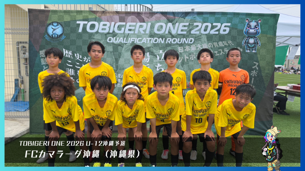 TOBIGERI ONE 2026 U-12沖縄予選最終結果速報❤️🔥 2026年4月12日 お知らせ 最終結果 ダウンロードはこちら 本大会出場権獲得 FCカマラーダ沖縄(沖縄県) 参加チーム 各種SNSアカウント TOBIGERIオフィシャルショップはこちら \結果速報はX(旧Twitter)/ \選手たちのリアルな様子はInstagram/ \大会終了後はYoutube/ \おもしろ動画はTiktok/ \テキスト速報&イベントの裏側はThreads/ URL Copied!