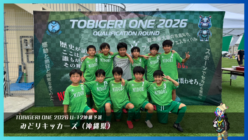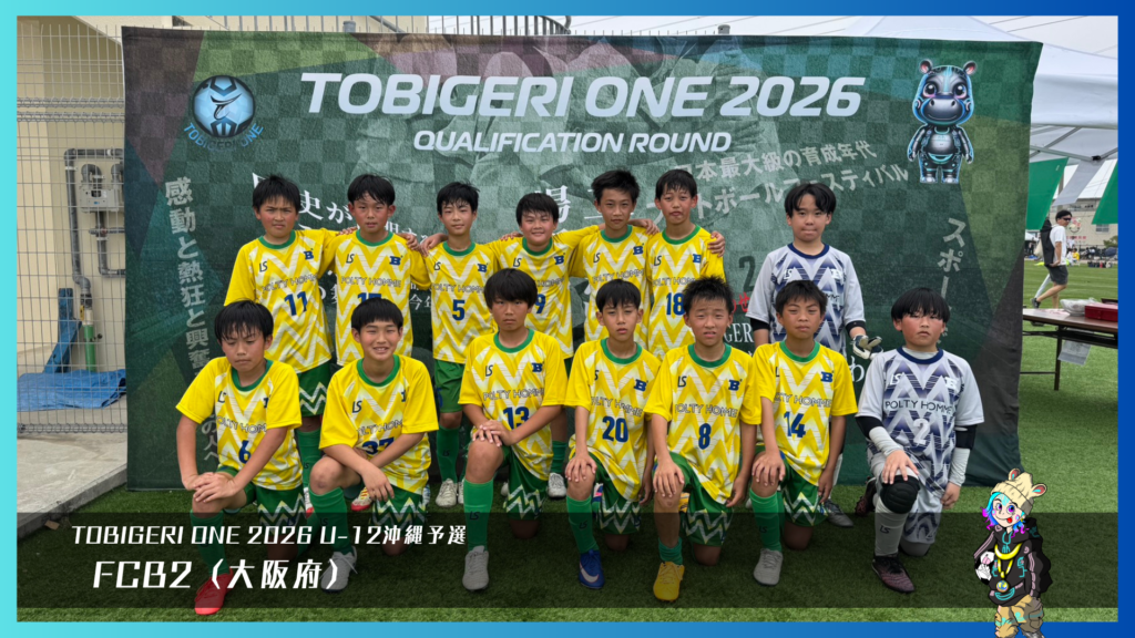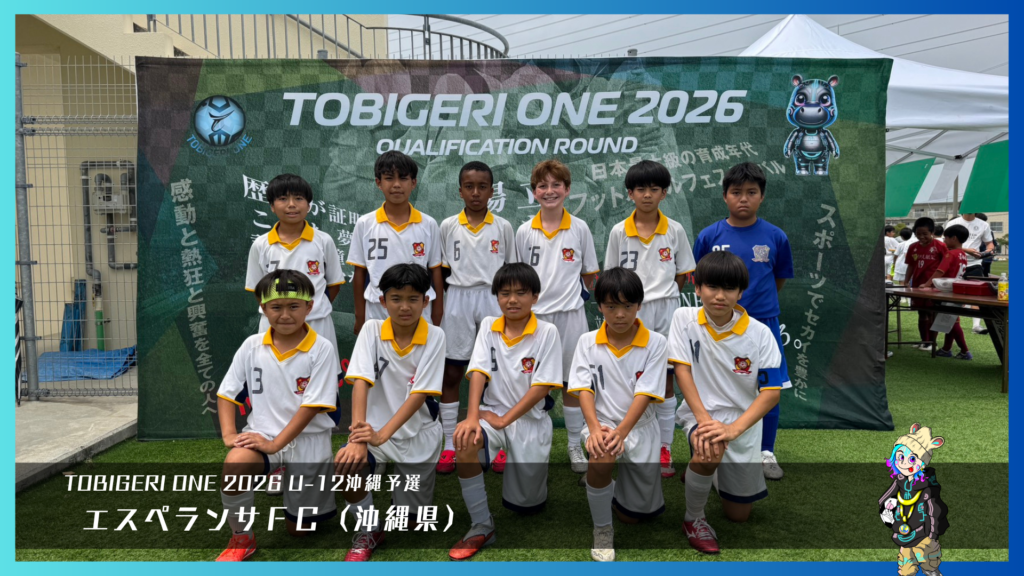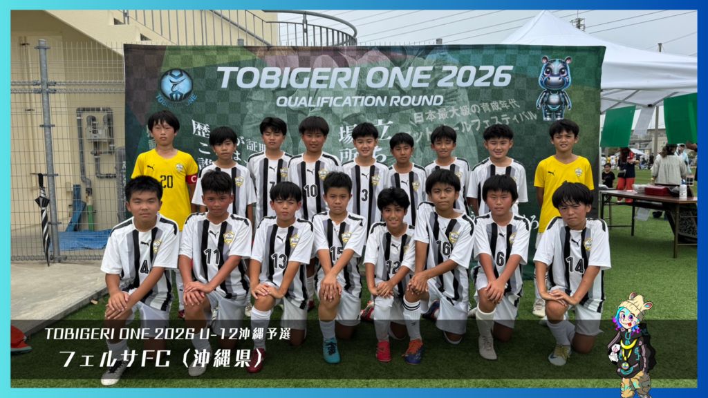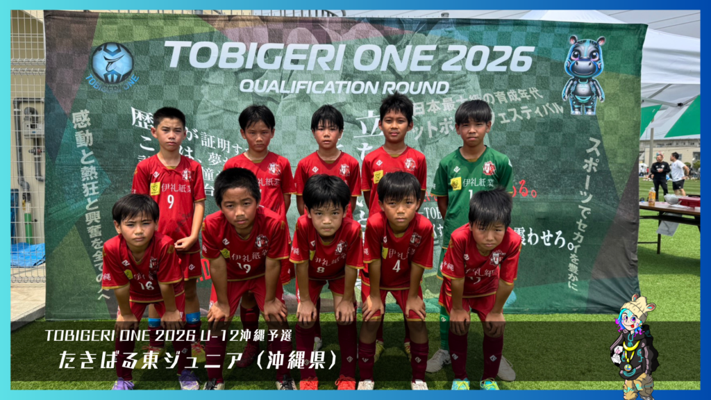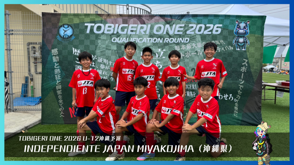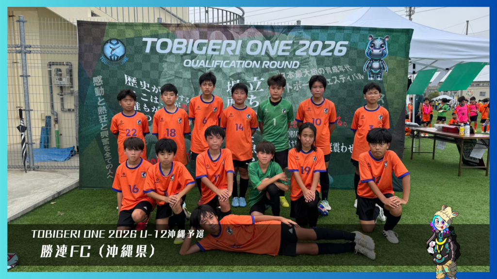 TOBIGERI ONE 2026 U-12沖縄予選最終結果速報❤️🔥 2026年4月12日 お知らせ 最終結果 ダウンロードはこちら 本大会出場権獲得 FCカマラーダ沖縄(沖縄県) 参加チーム 各種SNSアカウント TOBIGERIオフィシャルショップはこちら \結果速報はX(旧Twitter)/ \選手たちのリアルな様子はInstagram/ \大会終了後はYoutube/ \おもしろ動画はTiktok/ \テキスト速報&イベントの裏側はThreads/ URL Copied!