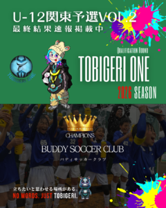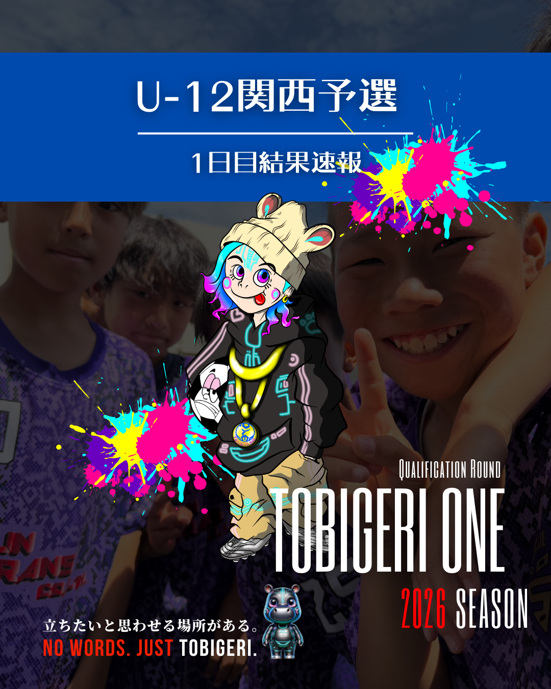 TOBIGERI ONE 2026 U-12関西予選DAY1結果速報❤️🔥 2026年4月18日 お知らせ 初日試合結果 ダウンロードはこちら 各種SNSアカウント TOBIGERIオフィシャルショップはこちら \結果速報はX(旧Twitter)/ \選手たちのリアルな様子はInstagram/ \大会終了後はYoutube/ \おもしろ動画はTiktok/ \テキスト速報&イベントの裏側はThreads/ URL Copied!