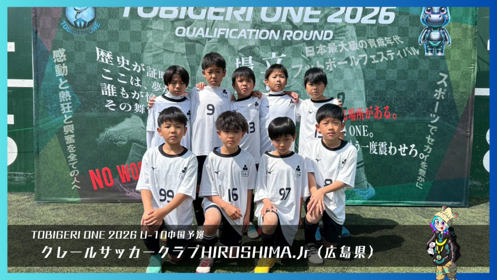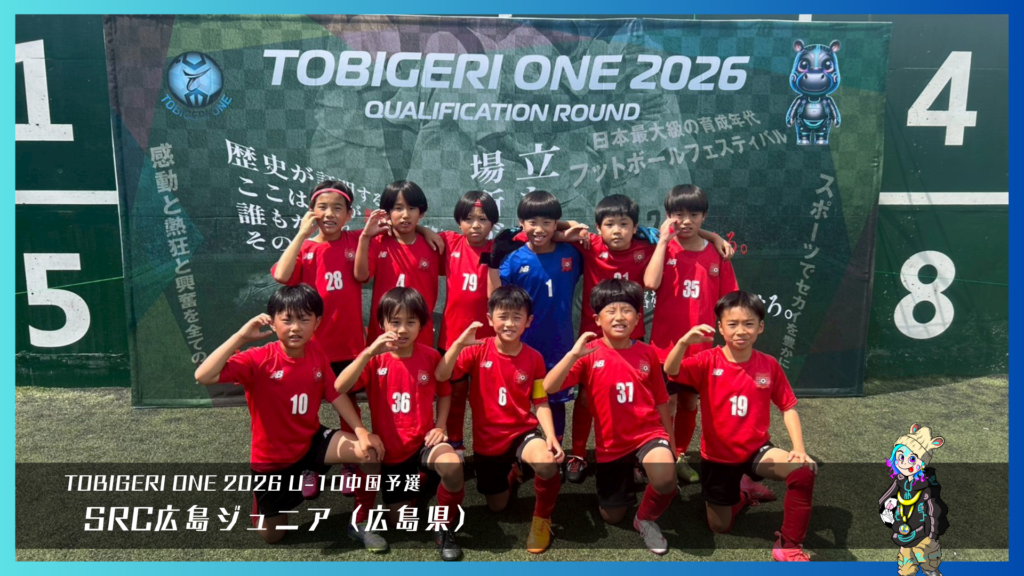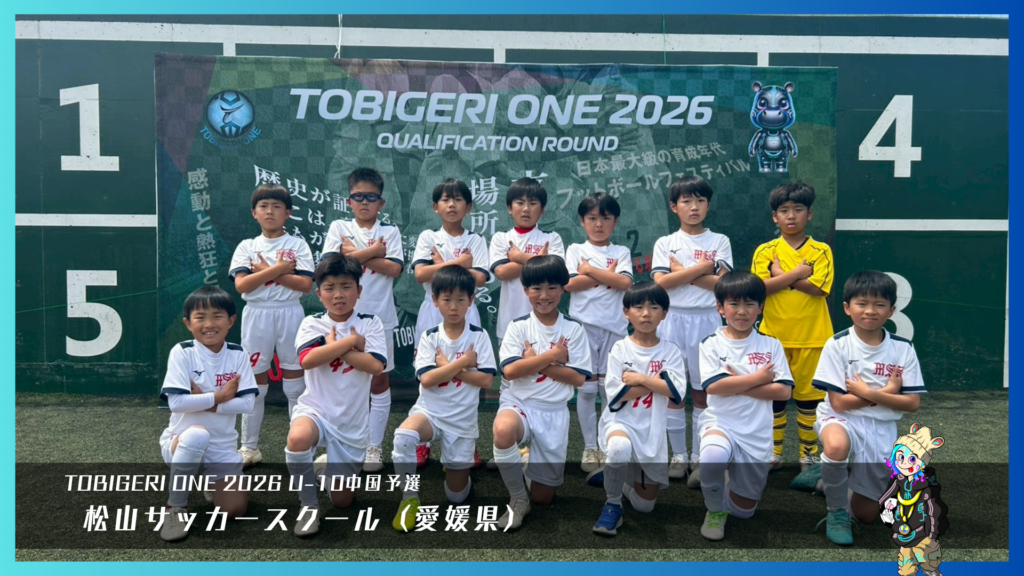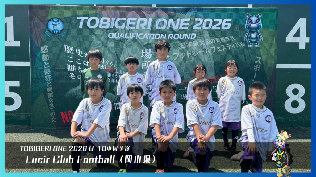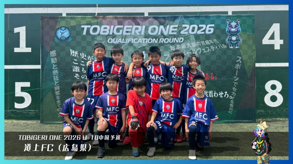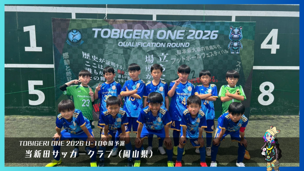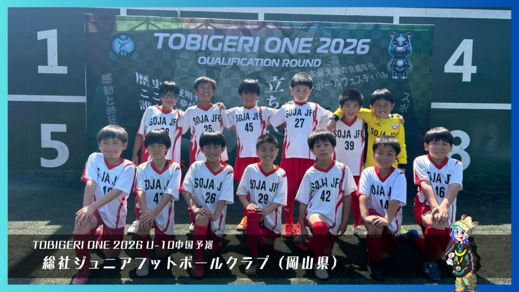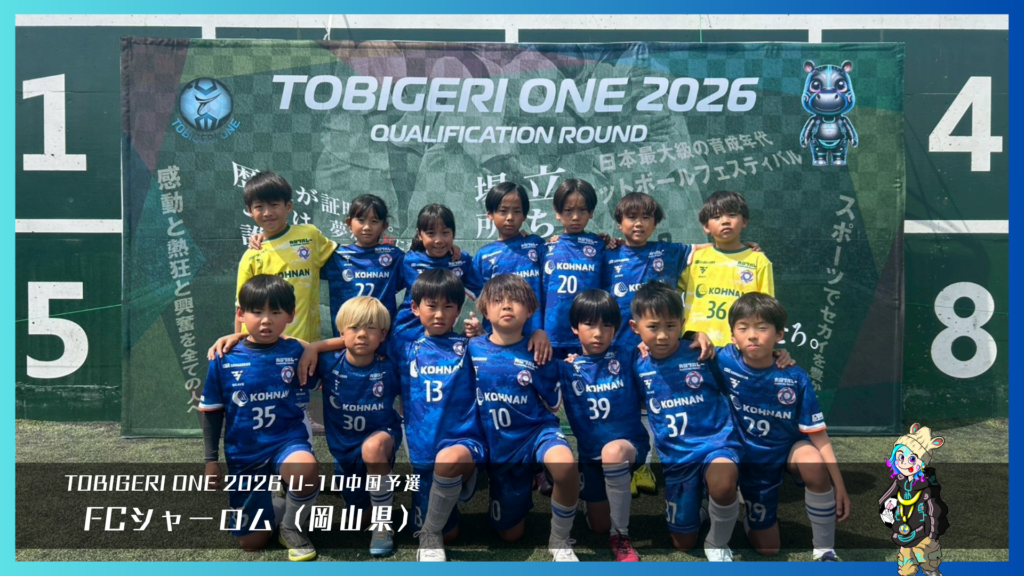 TOBIGERI ONE 2026 U-10中国予選 最終結果速報❤️🔥 2026年4月26日 お知らせ 最終結果 ダウンロードはこちら 本大会出場権獲得 FCシャーロム(岡山県) 参加チーム 各種SNSアカウント TOBIGERIオフィシャルショップはこちら \結果速報はX(旧Twitter)/ \選手たちのリアルな様子はInstagram/ \大会終了後はYoutube/ \おもしろ動画はTiktok/ \テキスト速報&イベントの裏側はThreads/ URL Copied!