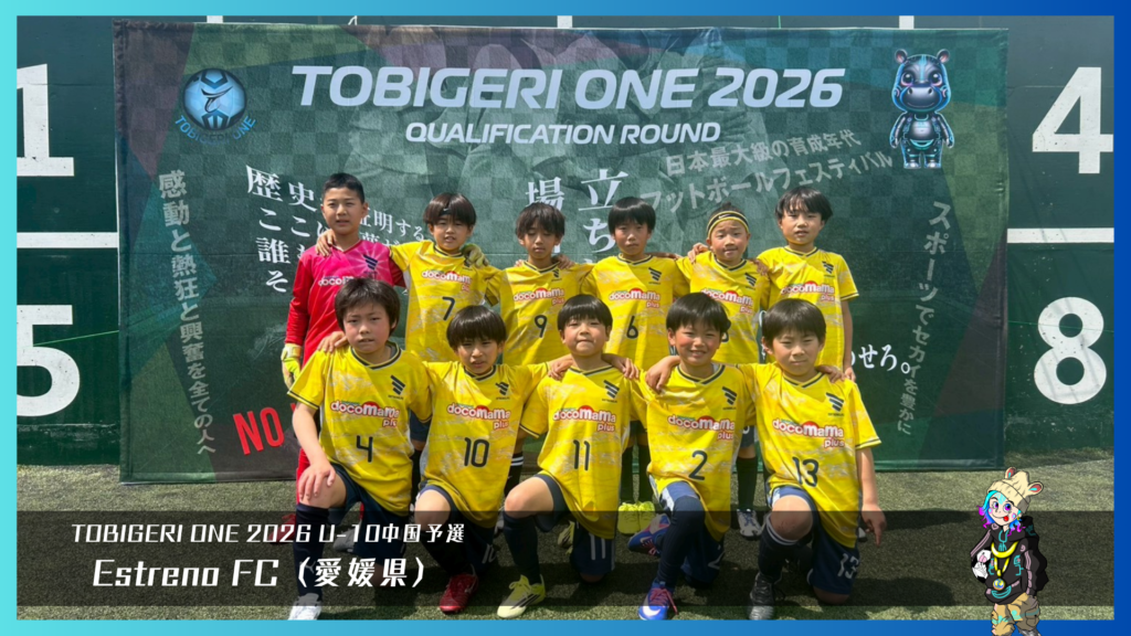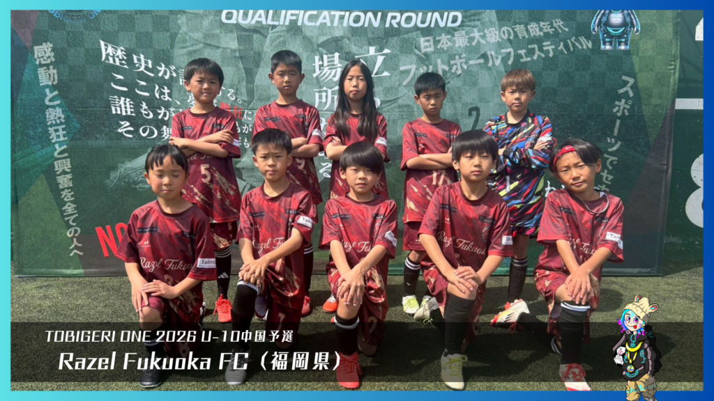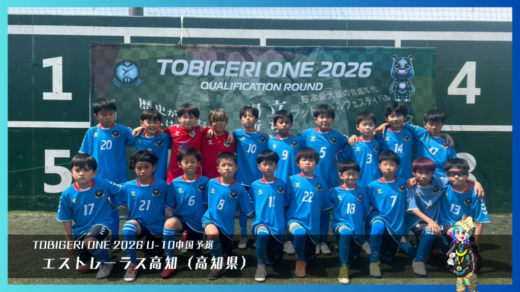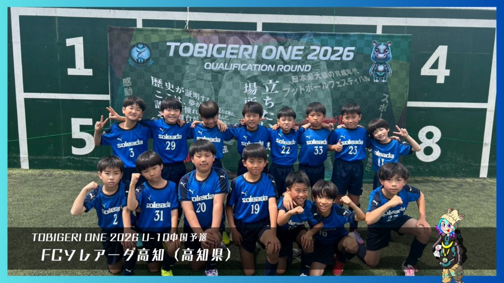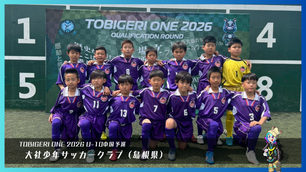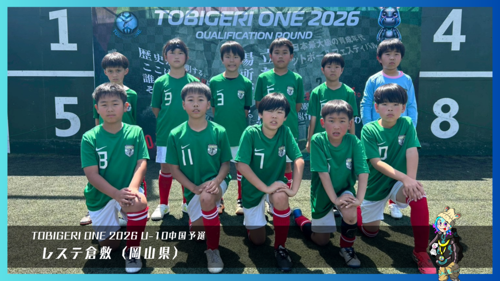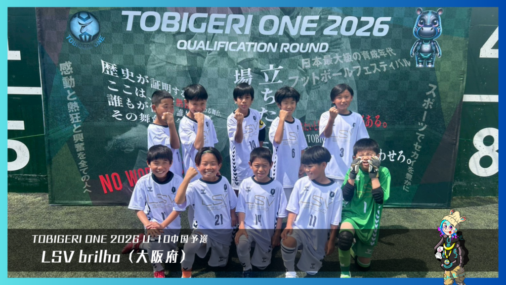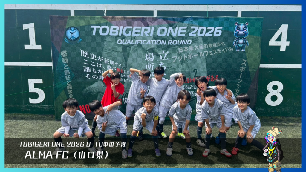 TOBIGERI ONE 2026 U-10中国予選 最終結果速報❤️🔥 2026年4月26日 お知らせ 最終結果 ダウンロードはこちら 本大会出場権獲得 FCシャーロム(岡山県) 参加チーム 各種SNSアカウント TOBIGERIオフィシャルショップはこちら \結果速報はX(旧Twitter)/ \選手たちのリアルな様子はInstagram/ \大会終了後はYoutube/ \おもしろ動画はTiktok/ \テキスト速報&イベントの裏側はThreads/ URL Copied!